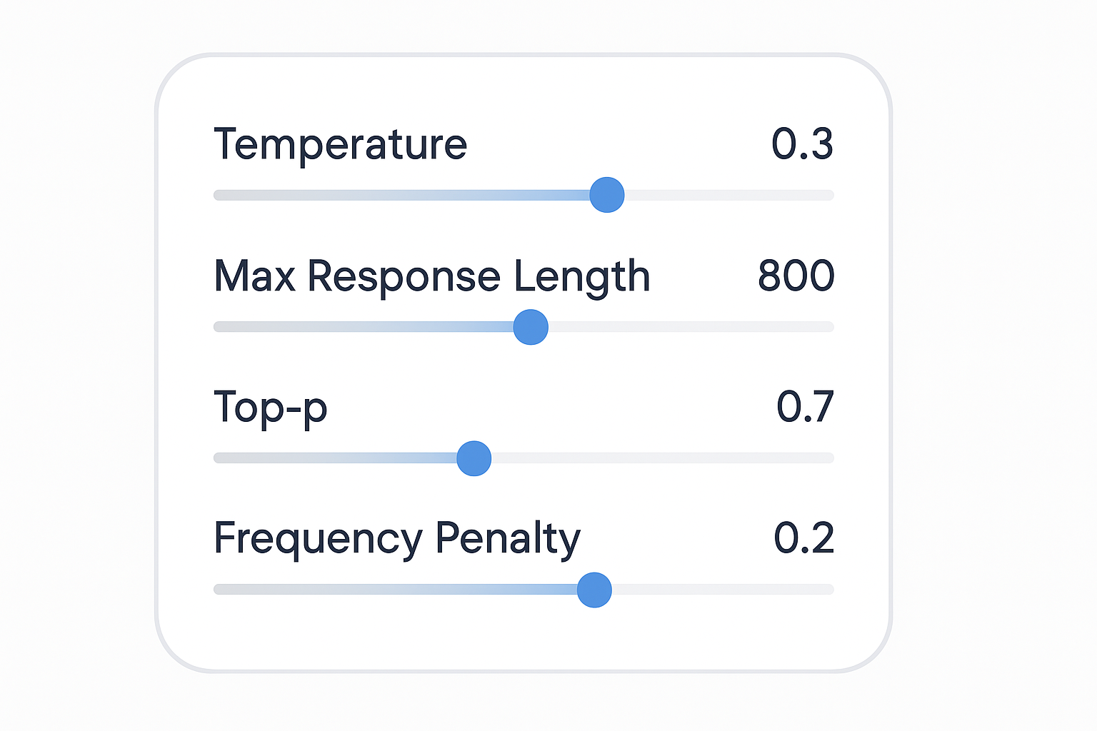 Parameters control HOW your AI generates responses. Two settings matter most:
